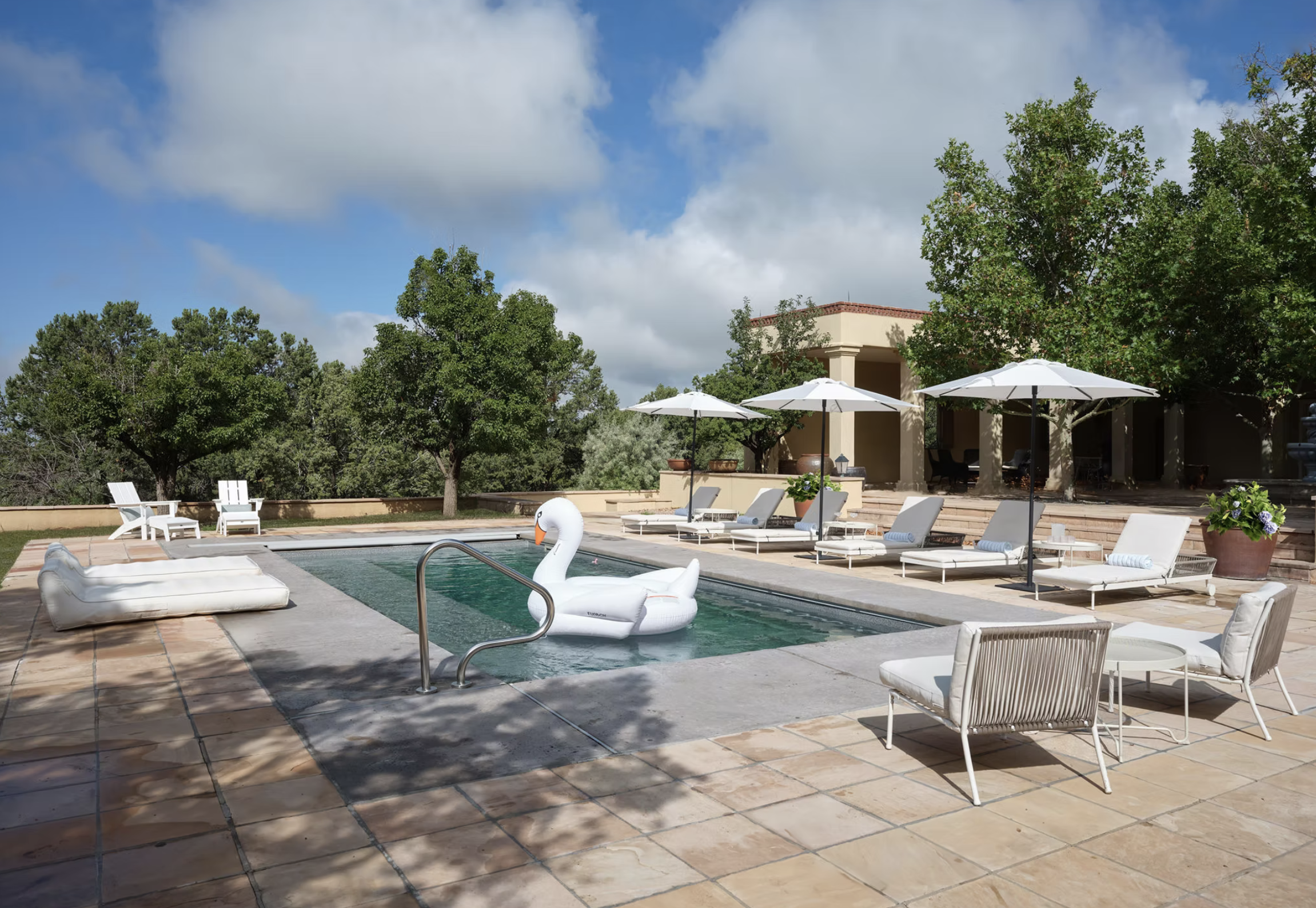 This suite has direct access to the back deck and the pool.