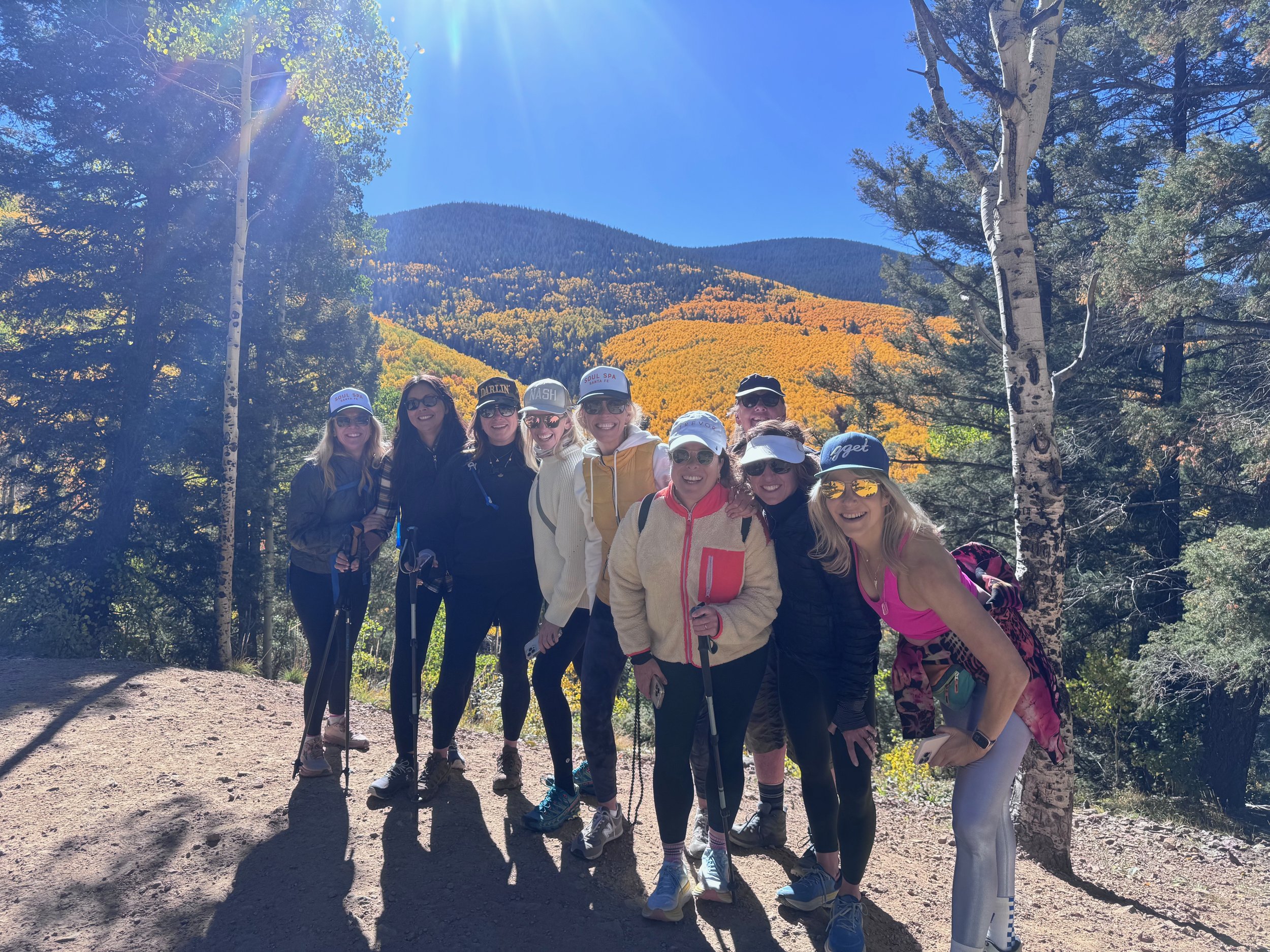 Sunday is your full-body exhale. We’ll begin with morning yoga, then head to Aspen Vista for a guided hike through Santa Fe’s most iconic fall landscape—crisp mountain air and glowing yellow aspen leaves. From there, the day shifts into deep renewal at Ten Thousand Waves, including lunch at Izanami, a private group soak, and time for optional spa treatments. We’ll close together at the Waves with a grounding circle—ready to carry the reset forward.